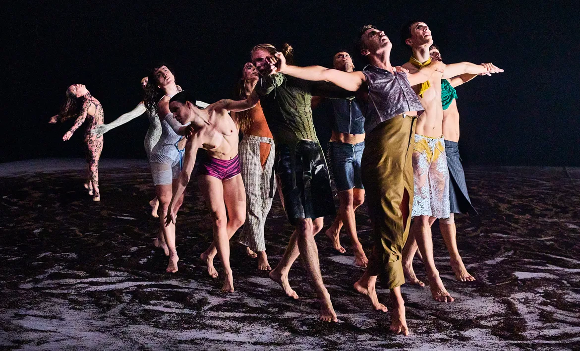 Direction and choreography in collaboration with the dancers Paloma Muñoz / Rehearsal director and choreography assistant Amanda Rubio / Intèrprets Edoardo Brovardi, Joan Ferré Gómez, Alejandro Fuster Guillén, Jacob Gómez Ruiz, Lara Misó Peinado, Paula Parra, Marta Santacatalina, Wilchaan Roy Cantù, Amanda Rubio, Blanca Tolsá / Sound design and music composition Alejandro González da Rocha amb la col·laboració de Ramon Balagué / Direct sound design and sound technician Rodrigo Rammsy / Stage space and lighting design Cube.Bz / Lighting and space technician